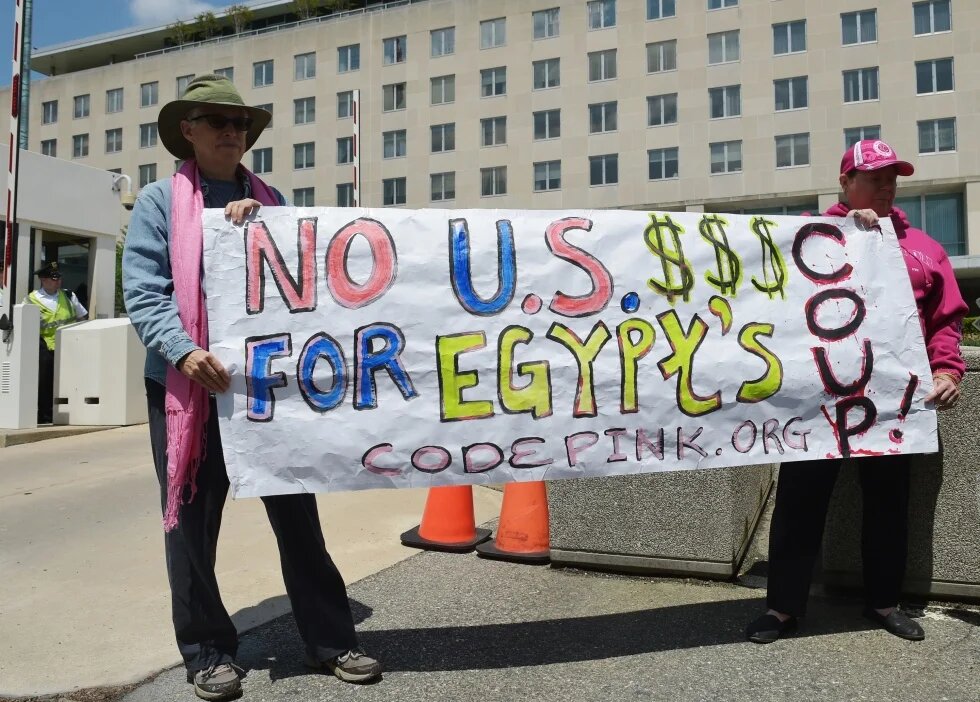 Photo: Protestors in front of the US State Department in Washington, DC on May 6, 2014 call on the US government to not release military funds for Egypt (AFP)