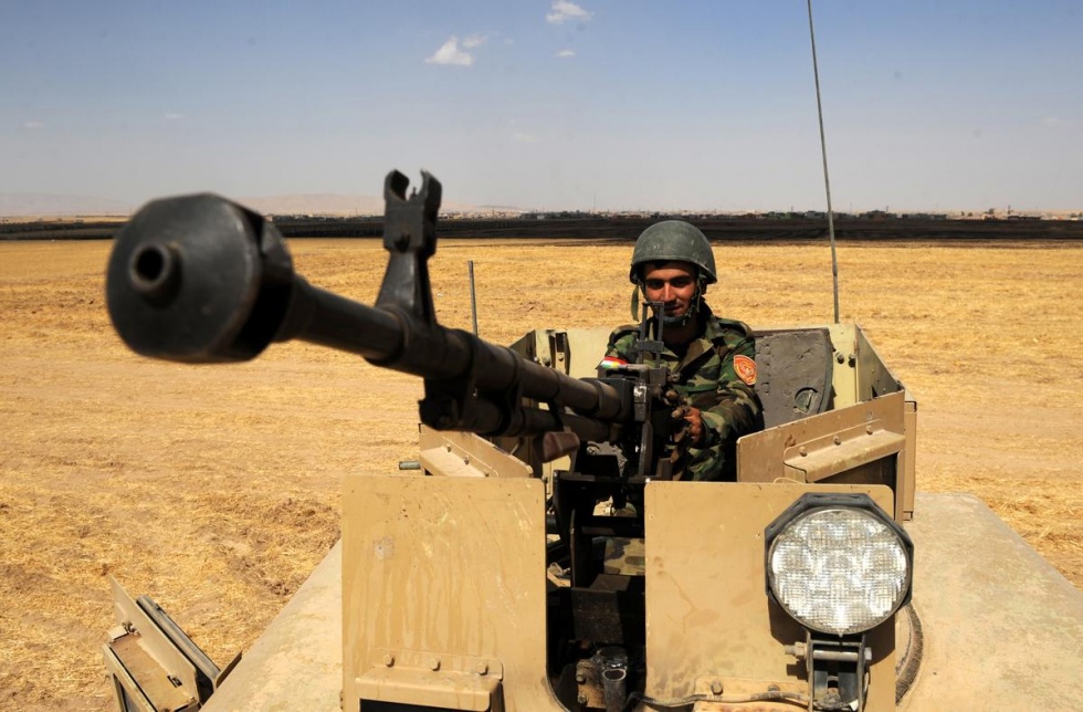 Photo credit: A peshmarga keeps watch and aims at armed groups led by Islamic State of Iraq (AA)