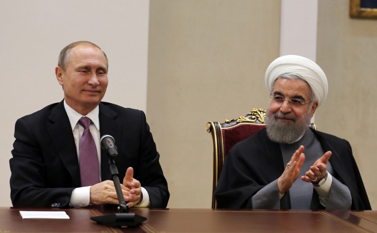 Photo: Iranian President Hassan Rouhani (R) and Russian counterpart Vladimir Putin hold a press conference following the Gas Exporting Countries Forum (GECF) summit in Tehran on 25 November, 2015 (AFP).