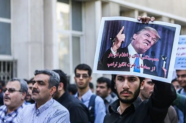 Photo: An Iranian student holds an anti-US President Donald Trump poster during a protest against Trump's latest speech on Iran, in Tehran, Iran 14 October 2017 (Tasnim News Agency/Reuters)