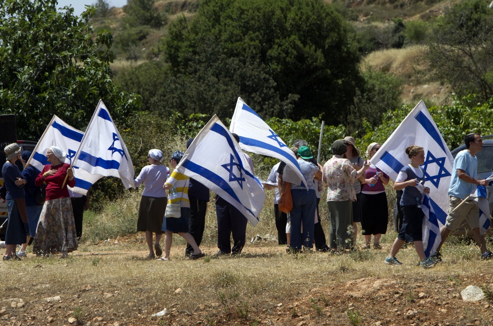 Photo: Jewish settlers from the settlements of Gush Etzion and Kiryat Arba wave Israeli flags as they gather on Route 60 (AFP)