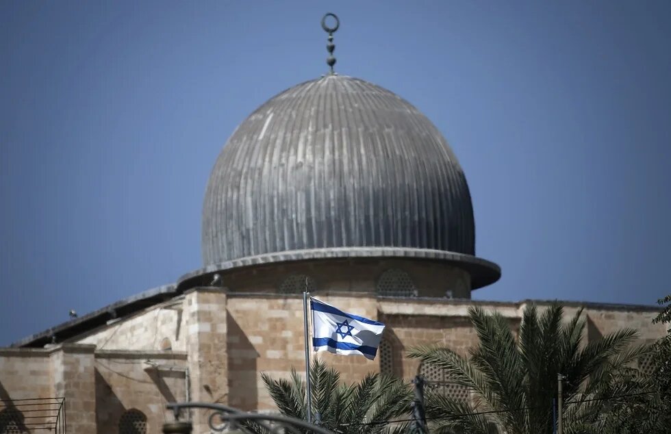 Photo credit: An Israeli flag, displayed on a roof of an Israeli settlement in East Jerusalem, is seen in front of the dome of the Al-Aqsa mosque