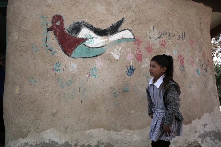 Photo: A Palestinian Bedouin school girl walks at her school in the village of Khan al-Ahmar in the Israeli-occupied West Bank on February 23, 2017 (AFP)