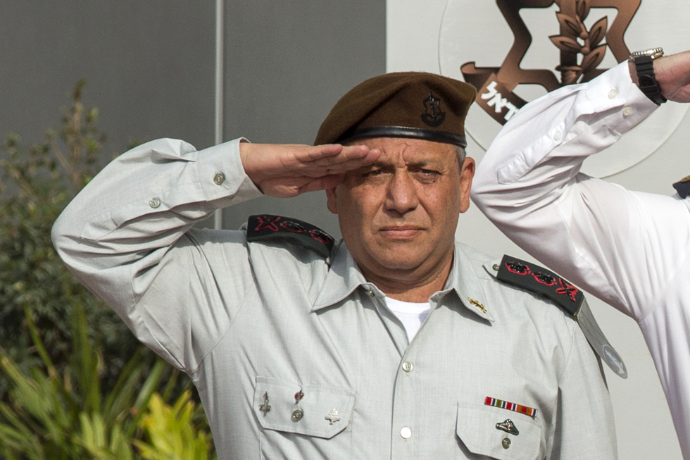 Photo: Israeli Army's Chief of Staff, Lieutenant General Gadi Eizenkot salutes during a swearing-in ceremony at the Defence Ministry on 16 February, 2015 in Tel Aviv (AFP).
