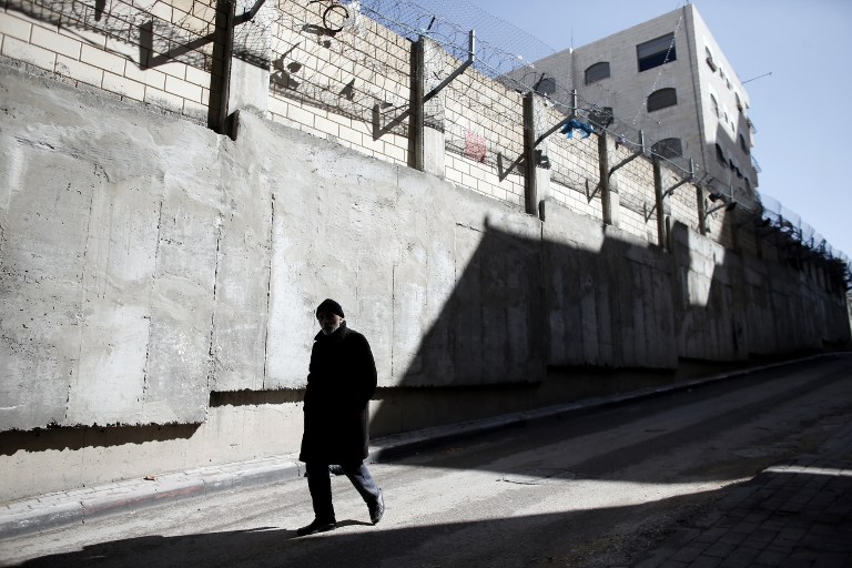 Photo: A Palestinian man walks along a section of Israel's controversial separation barrier that separates the West Bank city of Al-Ram (behind the wall) from East Jerusalem in February 2016 (AFP).