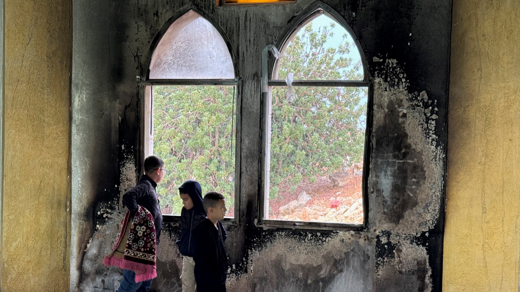 Palestinian children look at damage in a mosque following an attack carried out by Israeli settlers, in the village of Deir Istiya in occupied West Bank on 14 November, 2025 (Reuters)