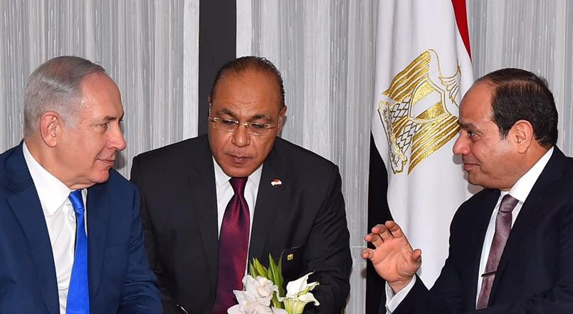 Photo: Egyptian President Abdel Fattah al-Sisi (R) speaks with Israeli Prime Minister Benjamin Netanyahu (L) during their meeting as part of an effort to revive the Middle East peace process ahead of the United Nations General Assembly in New York, US, September 19, 2017 (REUTERS)