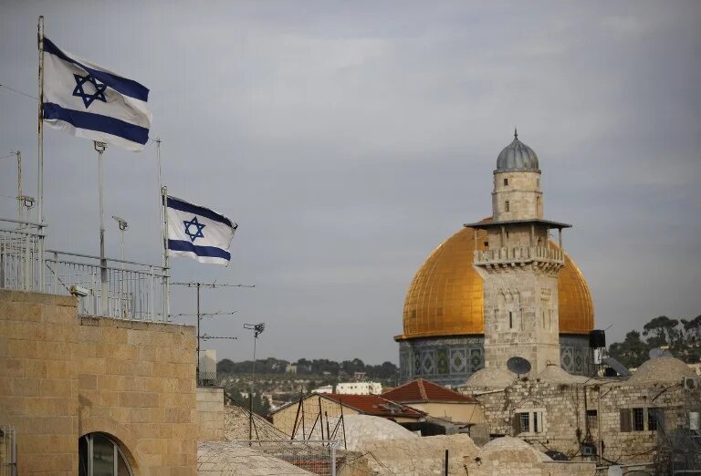 Photo: Israeli flags fly near the Dome of the Rock in the al-Aqsa Mosque compound on 5 December 2017 (AFP)