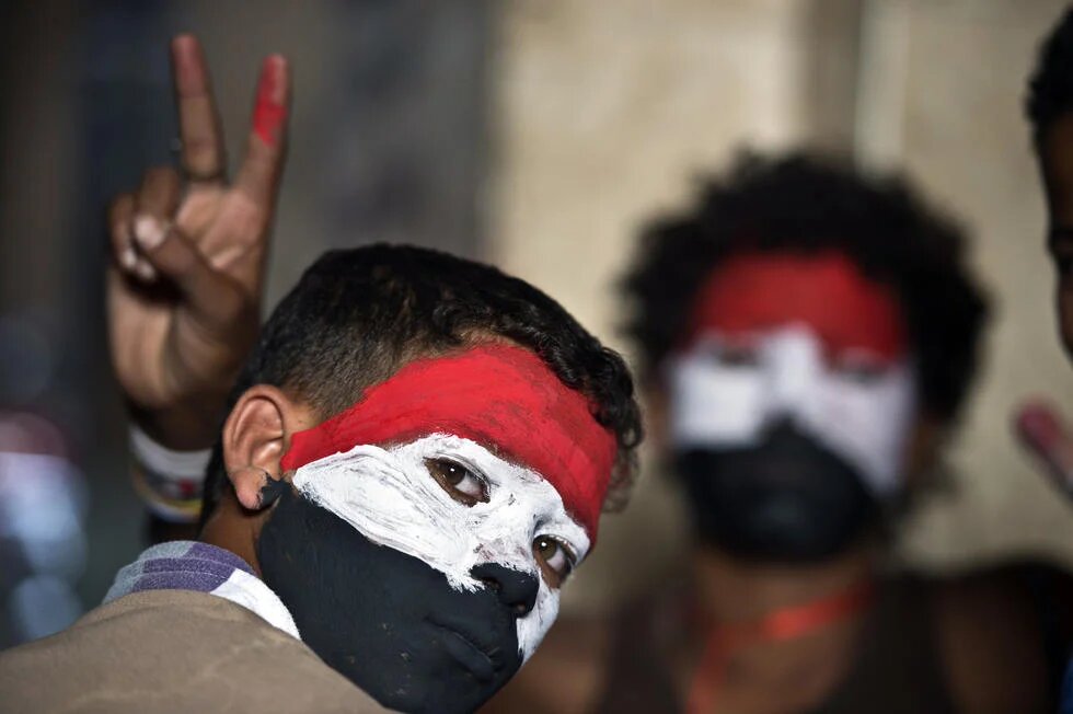 Photo: Youth of Egypt with their faces painted with Egyptian flag, Tahrir Square, July 2013 (AFP)