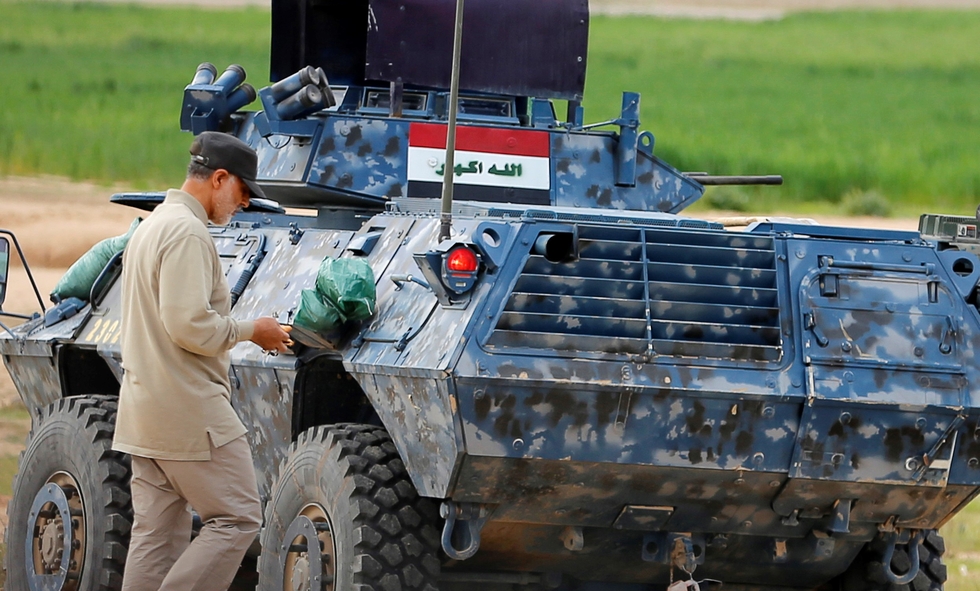 Photo: Iranian Revolutionary Guard Commander Qassem Soleimani walks near an armoured vehicle at the frontline during offensive operations against Islamic State militants in the town of Tal Ksaiba in Salahuddin province March 8 2015 (REUTERS)