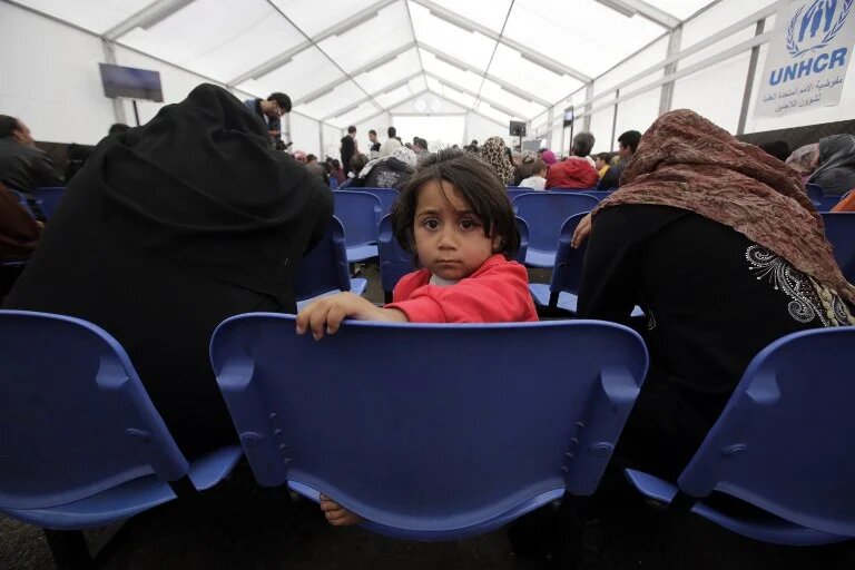 Photo: A young Syrian refugee looks at photographers inside a UNHCR (United Nations Refugee Agency) registration center, one of many across Lebanon, in the northern port city of Tripoli on 3 April 2014 (AFP)