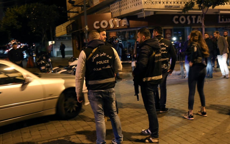 Photo: Lebanese security forces secure the street near the cafe in Hamra street in Beirut where a suicide bomber was arrested minutes before exploding himself on 22 January 2017 (AFP)