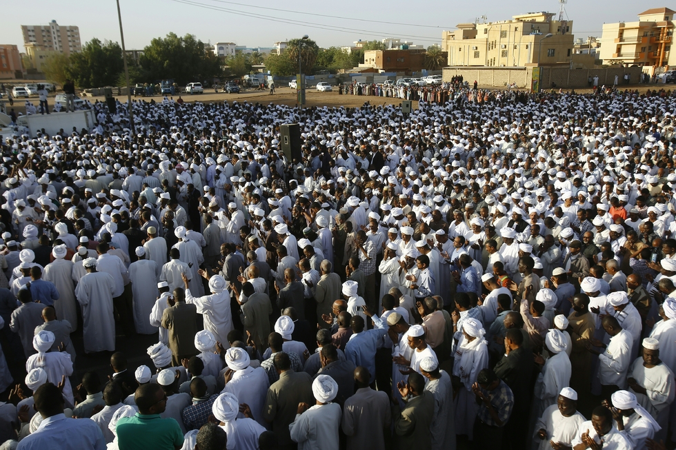 Photo: Mourners attend the funeral of veteran Sudanese Islamist opposition leader Hassan al-Turabi on 6 March, 2016 in the capital Khartoum (AFP).