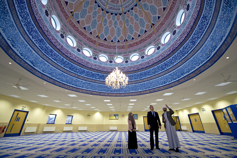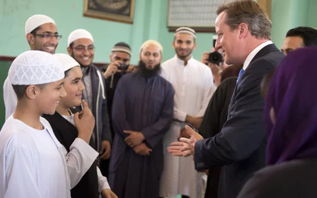 Photo: British Prime Minister David Cameron (C) visits Makkah Masjid Mosque in Leeds, northern England, on 18 January, 2016 (AFP).