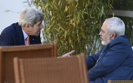 Photo: US Secretary of State John Kerry (L) and Iranian Foreign Minister Mohammad Javad Zarif pose for a photographer prior to a bilateral meeting of the closed-door nuclear talks with Iran at the Palais Coburg in Vienna on 23 November, 2014.