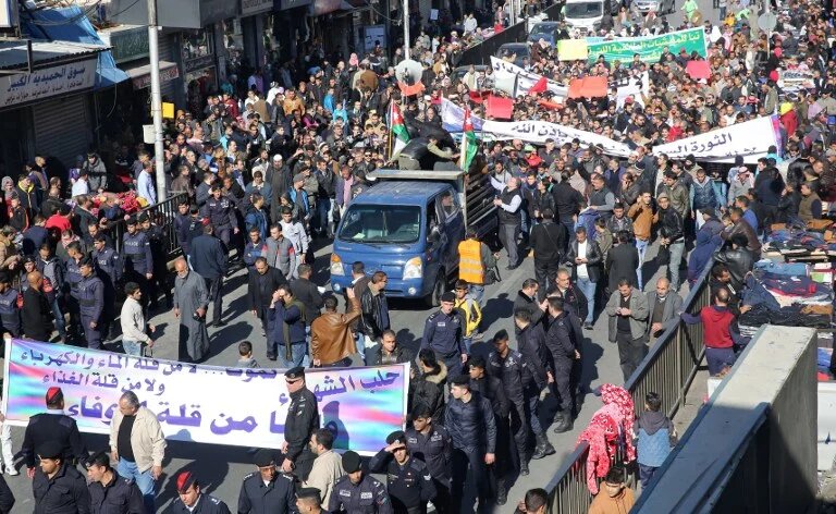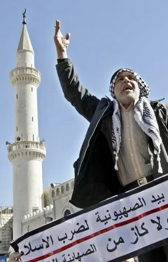 Photo: Jordanian supporters of Muslim Brotherhood chant slogans and wave placards in Amman last year during protest in solidarity with people of Aleppo and against Syrian regime (AFP)