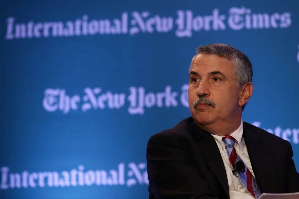Photo: New York Times columnist Thomas Friedman speaks to an audience at a conference in Singapore