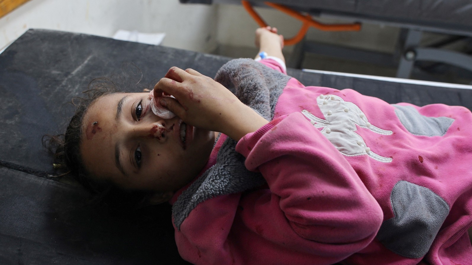 A Palestinian girl lies on a mattress at the Indonesian hospital following an Israeli strike, in the northern Gaza Strip on 19 March 2025 (Reuters)