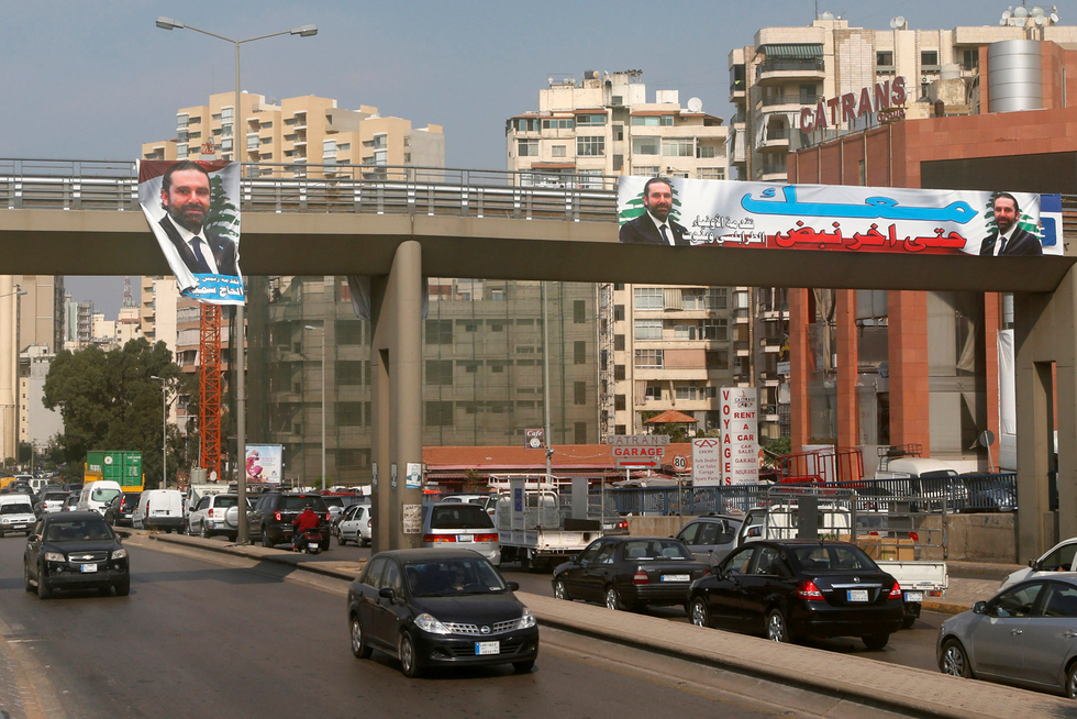 Photo: Banners showing pictures for Lebanon's former prime minister Saad al-Hariri are hung on a pedestrian bridge in Beirut (Reuters)