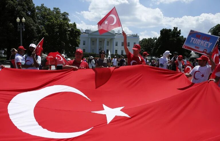 Photo: Supporters of Turkish President Recep Tayip Erdogan rally outside the White House in Washington, DC in July 2016 after the attempted coup (AFP)