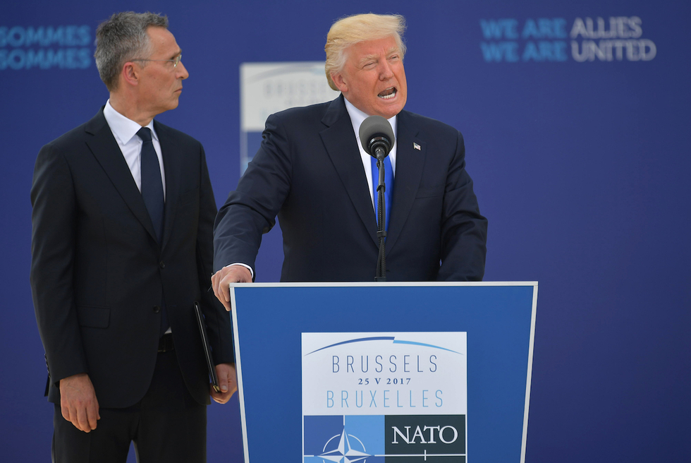 Photo: US President Donald Trump speaks in Brussels after a meeting with NATO chief Jens Stoltenberg in May 2017 (AFP)