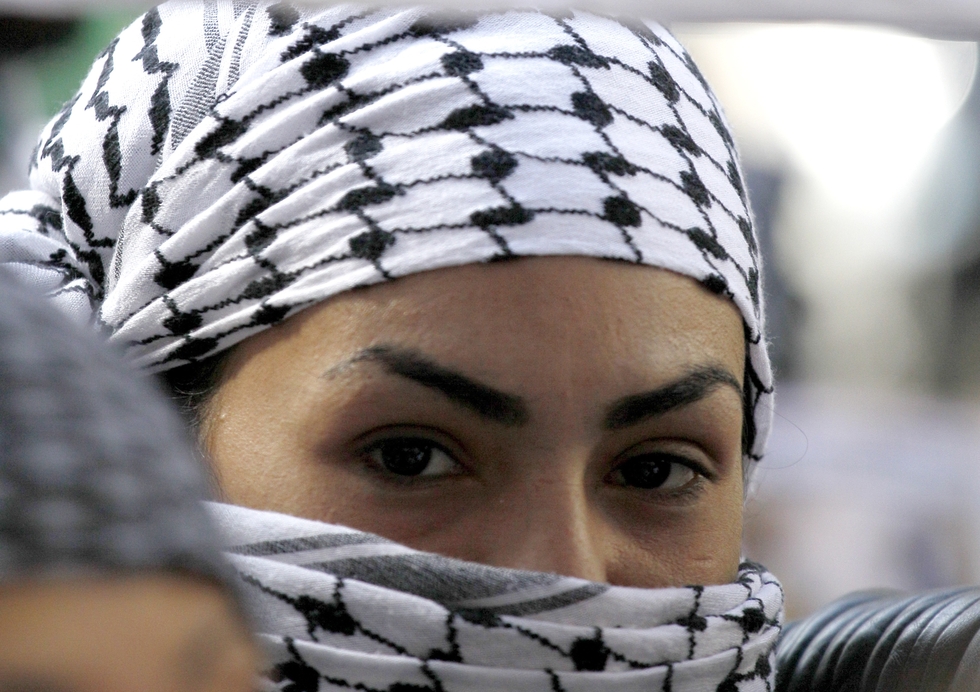 Photo: A woman takes part in a pro-Palestinian demonstration on 10 October, 2015 in Paris (AFP).