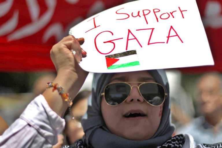 Photo: A Jordanian woman holds a placard reading "I support Gaza" during a protest against the Israeli military offensive against the Palestinian strip, on 25 July, 2014 in downtown Amman, Jordan (AFP).