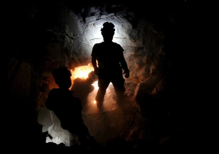 Photo: Syrian civil defence volunteers, known as the White Helmets, search for victims amid the rubble of destroyed buildings following a government forces air strike on the rebel-held neighbourhood of Bustan al-Basha in the northern city of Aleppo, on 4 October 2016 (AFP)
