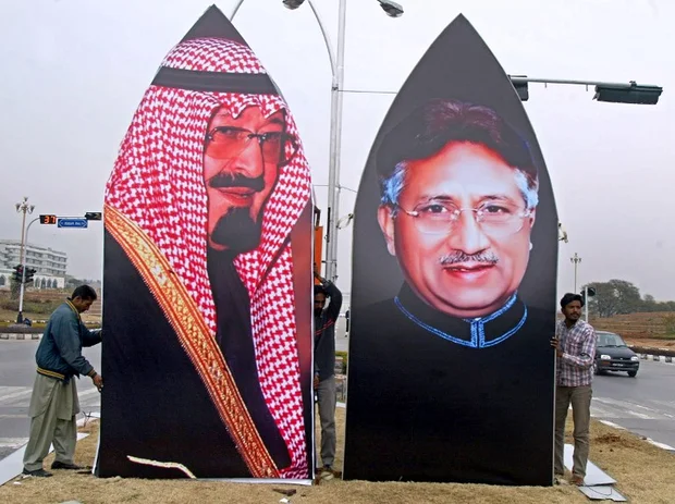 Days gone by: Billboards of Musharraf and Saudi's King Abdullah go up as Pakistan prepares for a 2006 visit (AFP)