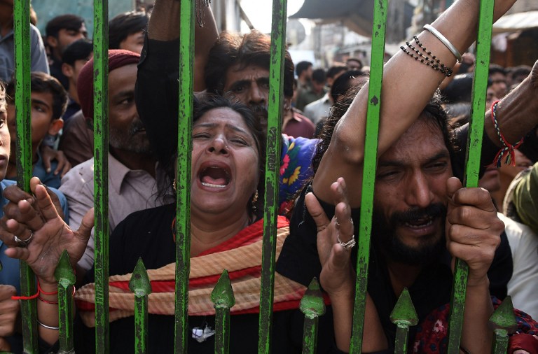 Photo: Pakistani devotees react as they gather outside closed gate of the shrine of 13th century Muslim Sufi saint Lal Shahbaz Qalandar a day after a bomb blew up at the shrine in the town of Sehwan in Sindh province, some 200km northeast of the provincial capital Karachi on 17 February 2017 (AFP)