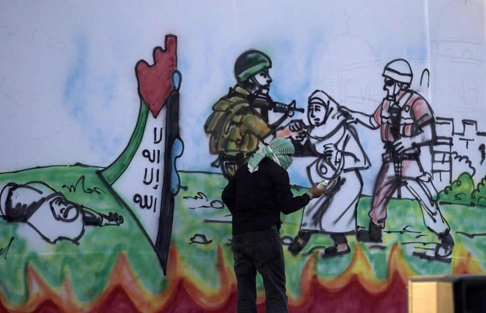 Photo: A Palestinian man paints on a wall a scene depicting a Palestinian woman being arrested by Israeli security forces during an anti-Israel rally on 26 February, 2016, in the southern Gaza Strip town of Rafah (AFP).