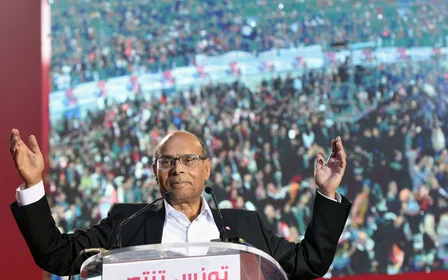 Photo: Former Tunisian president Moncef Marzouki delivers a speech during a rally to launch his new political party Al-Irada (the will) in the capital Tunis on 20 December, 2015 (AFP).
