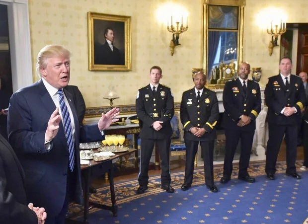 US President Donald Trump speaks during reception for law enforcement officers and first responders in Blue Room of White House on 22 January, 2017 (AFP)