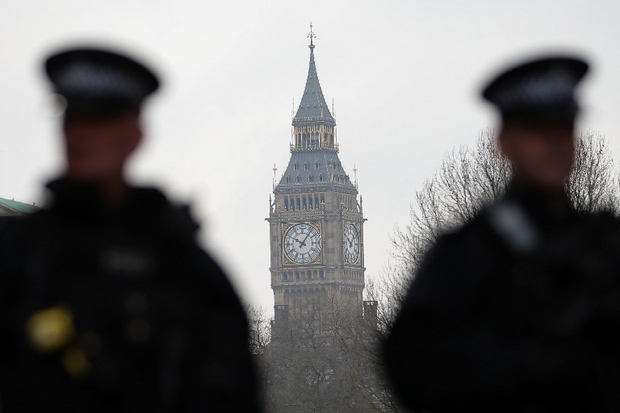 Armed police officers secure the area near the Houses of Parliament in central London on 23 March 2017 (AFP)
