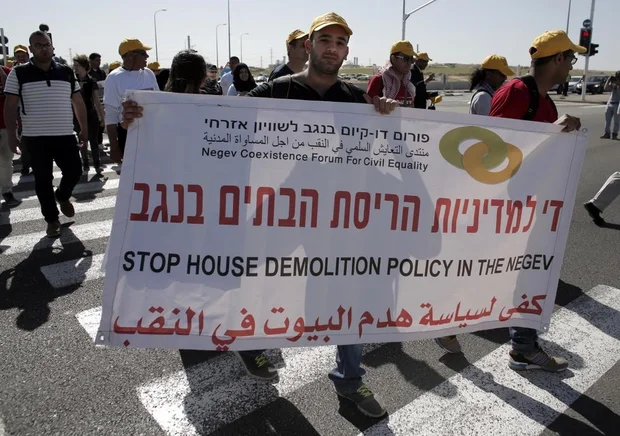 Photo: Palestinian citizens of Israel demonstrate in Tel Aviv against a wave of house demolitions in April, 2015 (MEE/Oren Ziv and Akram Drawshi)