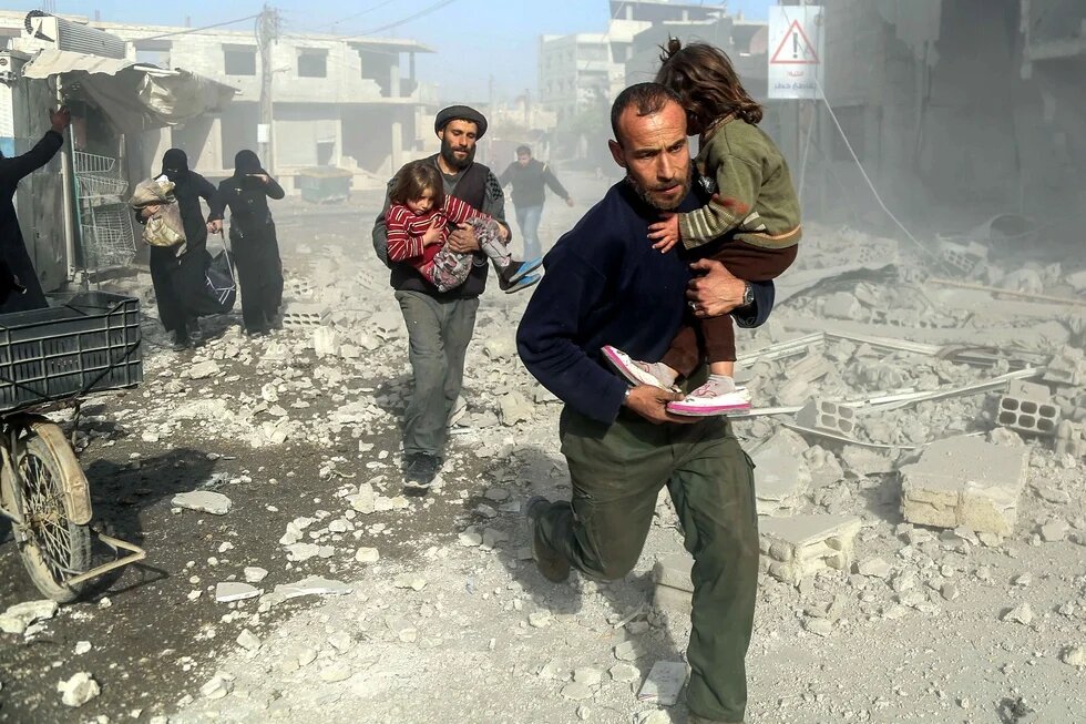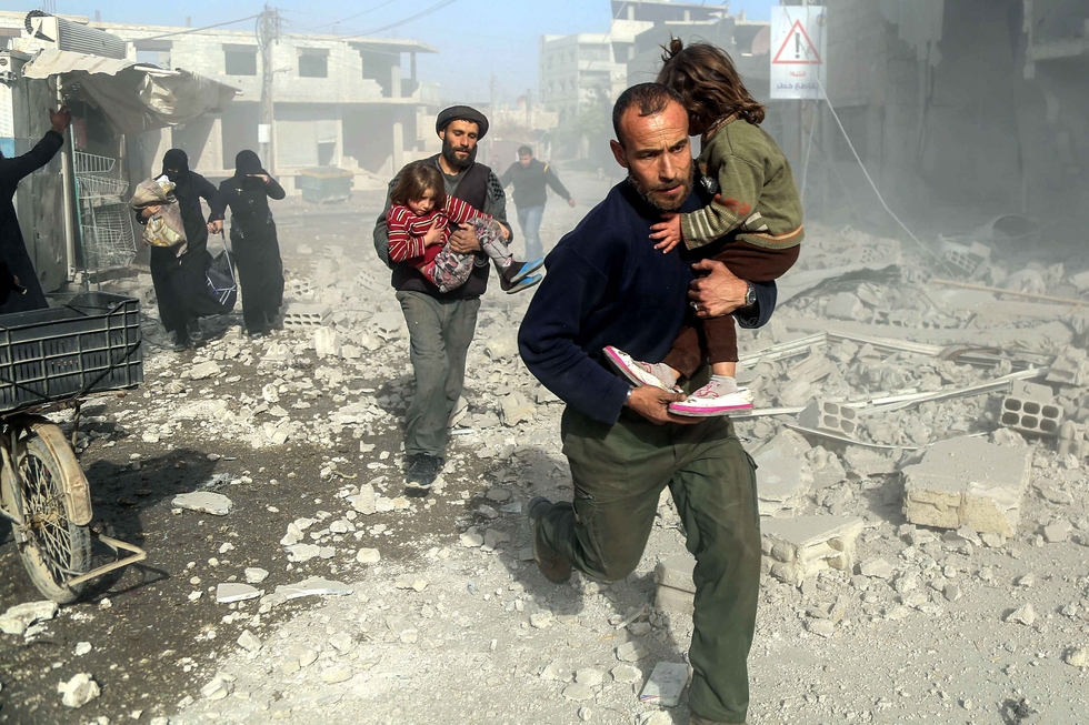 Photo: Syrians make their way through debris following a reported air strike in the rebel-held town of Beit Sawa in the eastern Ghouta region on the outskirts of the capital Damascus in December 2017 (AFP)
