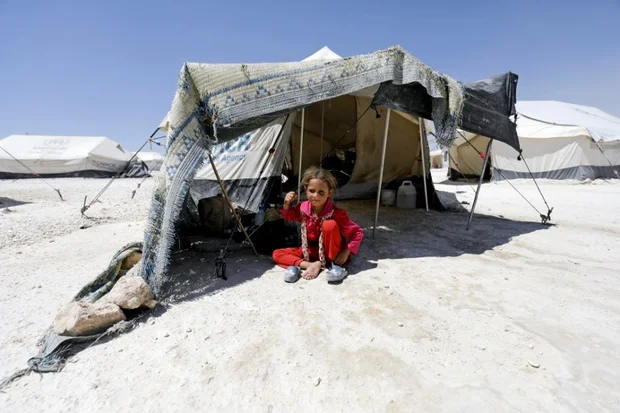 A displaced Syrian girl who fled the region around Raqaa sits in a tent in Ain Issa in July 2017 (AFP)