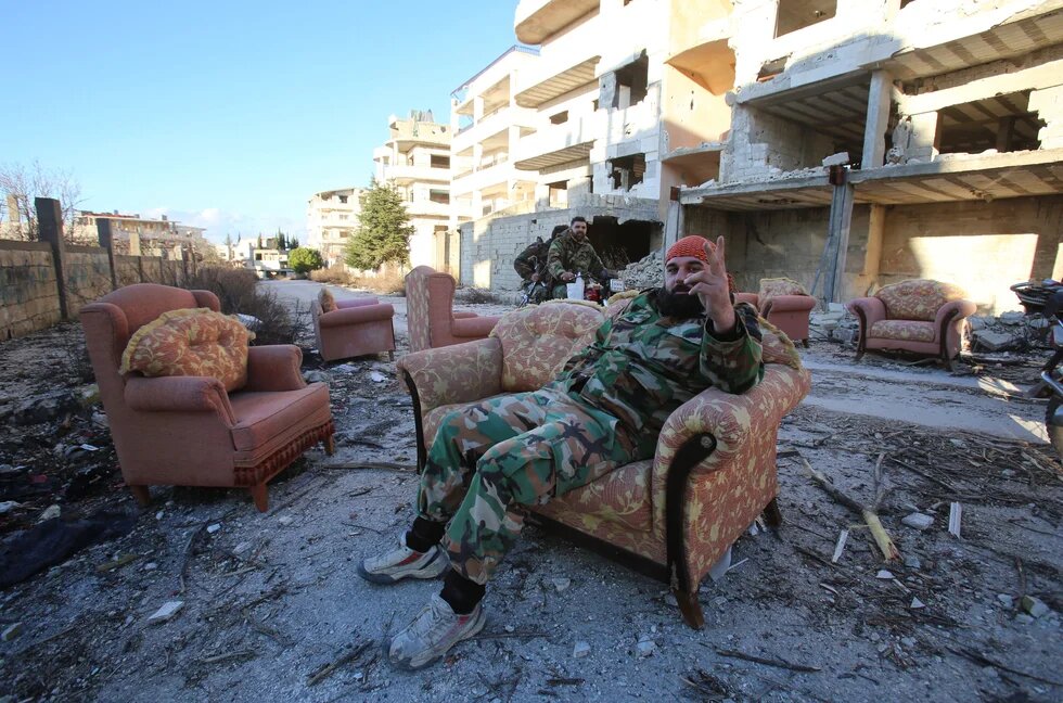 Photo: A member of the Syrian pro-government forces sits on a sofa in the strategic town of Salma, in the coastal Latakia province, on 15 January, 2016, following its recapture from rebel fighters (AFP).