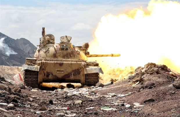 Photo: Yemeni tribesmen from the Popular Resistance fire from a tank west of Marib city in November 2015 (AFP).