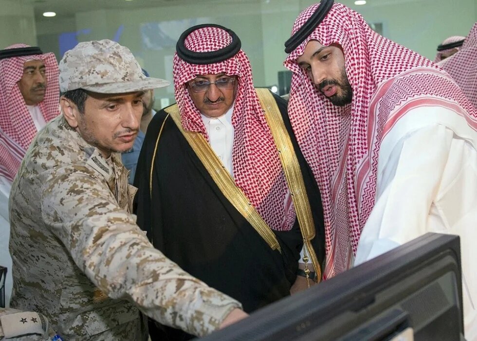 Credit: Saudi Defence Minister Mohammed bin Salman bin Abdul Aziz and Second Crown Prince and Interior Minister Mohammed bin Nayef bin Abdul Aziz meeting with Saudi air forces officers to discuss plans (AFP)