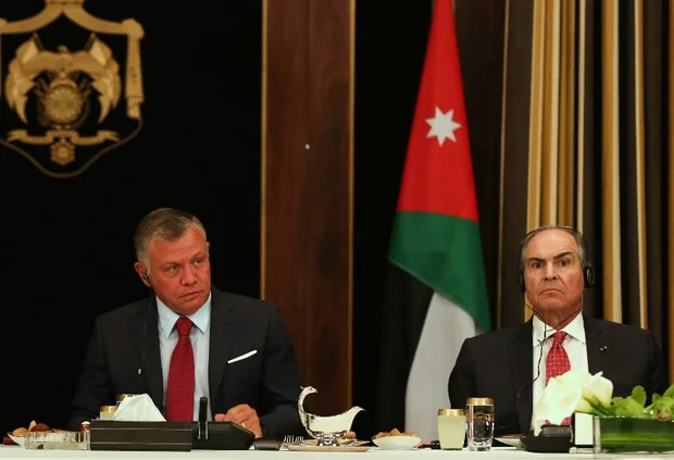Jordanian King Abdullah II and Prime Minister Hani al-Mulki attend an official meeting in Amman on 1 May 2018 (AFP)