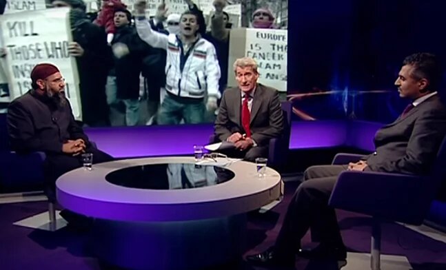 Photo: Anjem Choudary  (L) and Maajid Nawaz (R) with Jeremy Paxman on BBC's Newsnight in 2010 (YouTube)