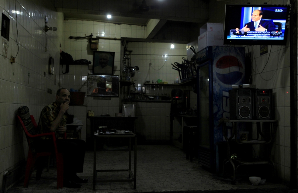 Photo: A man smokes next to a television interview broadcast on CBC and ONTV with presidential candidate and Egypt's former army chief Abdel Fattah al-Sisi, at a cafe in Cairo 6 May 2014 (REUTERS/Amr Abdallah Dalsh)