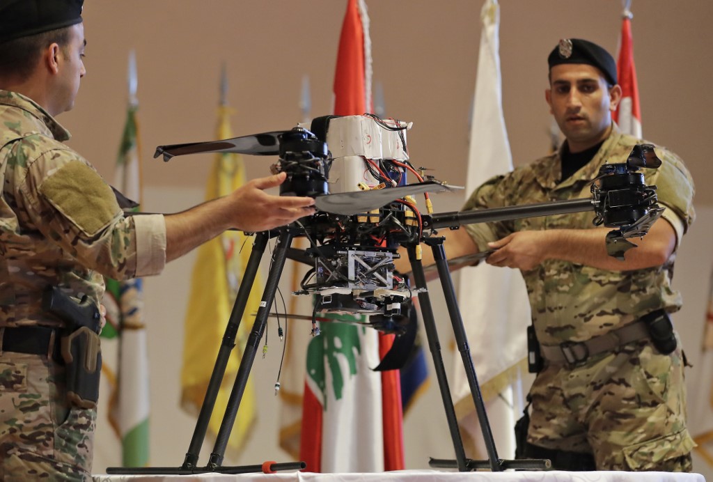 Lebanese soldiers carry an Israeli drone captured after falling in Beirut in 2019 (AFP)