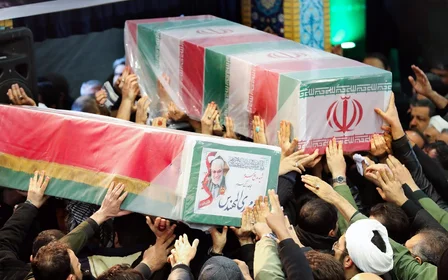 In Tehran, the bodies were placed in front of mourners who gathered behind Khamenei as he led prayers for the departed, with their coffins wrapped in Iranian and Iraqi flags. Indeed, Iran’s leader prayed in front of the colours of a country with which Iran fought the longest conventional war of the 20th century.
