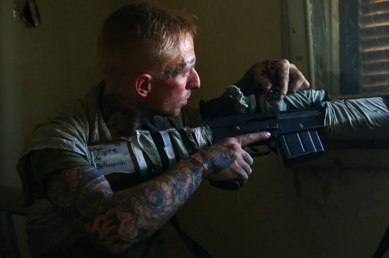 Photo: An American sniper supporting the Syriac Military Council (SMC), a small minority of Christian fighters fighting alongside the Syrian Democratic Forces in the combat against the Islamic State (IS) group, on the western outskirts of Raqqa on 27 June 2017 (AFP)