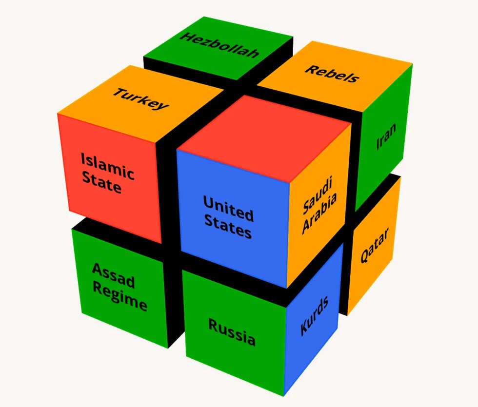 Multiple regional players are each fighting their own war in Syria, which complicates any long-term solution.