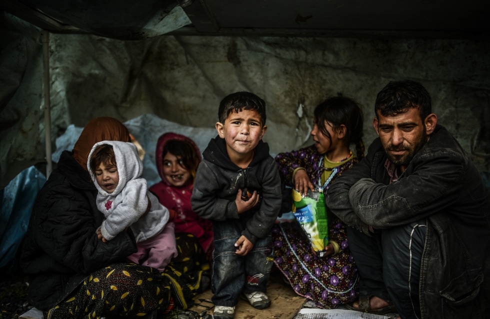 Photo credit: A Syrian refugee family from Aleppo, stay under a shelter during a rainy day on March 8, 2014, at Uskudar in Istanbul (AFP)