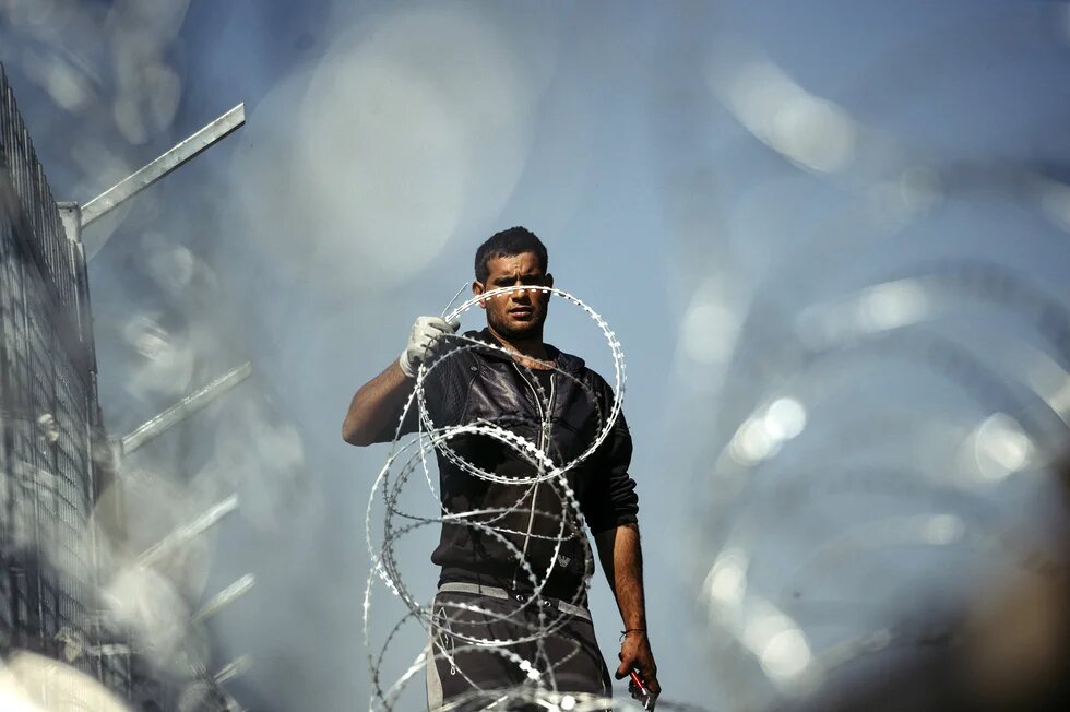 Photo: A worker attaches barbed wire to a border fence to prevent illegal crossings by migrants at the Bulgarian-Turkish border near the Bulgarian village of Shtit, on 18 March, 2016 (AFP).