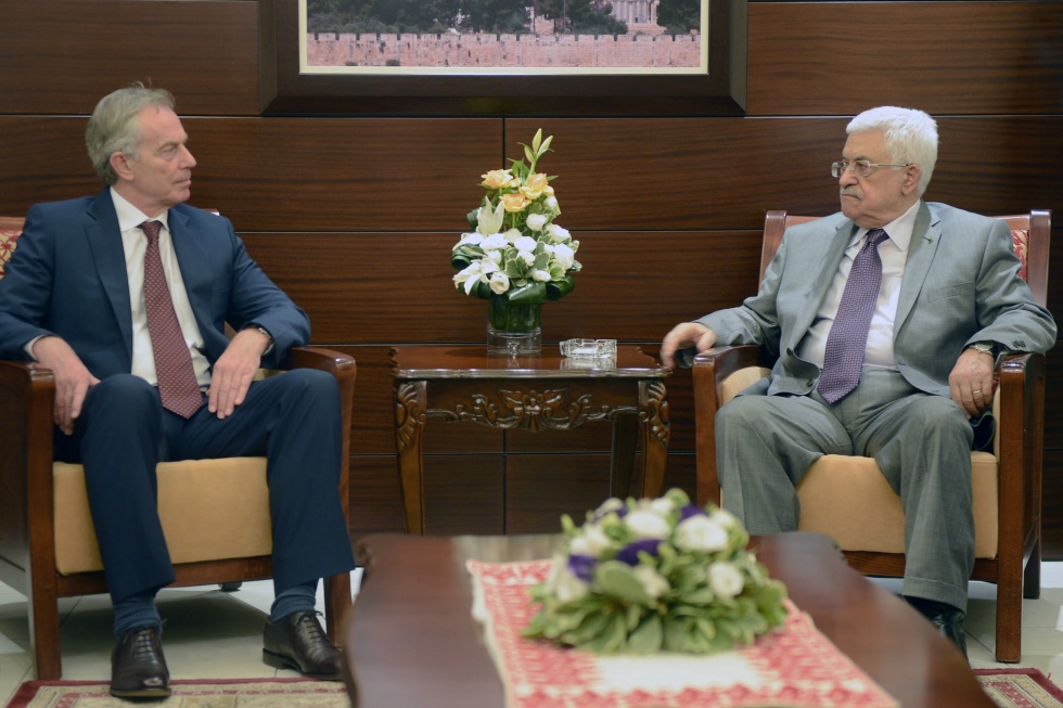 Photo: Tony Blair and Palestinian leader Mahmoud Abbas at a meeting in July 2013 (AFP)